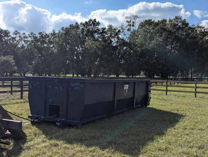 Same-day or next-day delivery is usually available. Ryan keeps 15 yard dumpsters in rotation since it’s a popular size for kitchen remodels and medium cleanouts around Ocala.